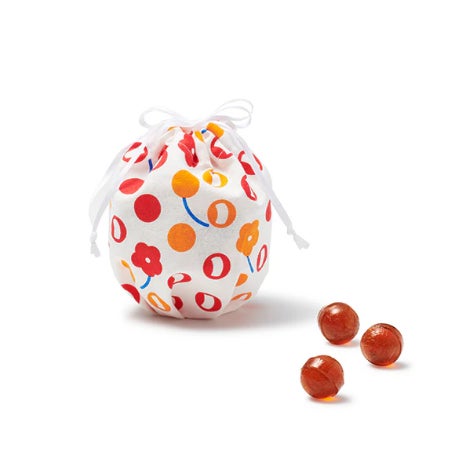 しょうゆを隠し味に使用した、まろやかな甘さとすっきりした後味が特徴のカンロ飴が入った商品。持ち運びに便利なミニ巾着は、アフターユースにもぴったり。