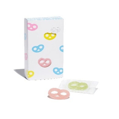 ヒトツブカンロの人気No.1商品「グミッツェル」をプチッと小さくした「グミッツェルプチ」が、バレンタイン・ホワイトデー仕様となって登場。ミニプレッツェル型のオレンジ味、ブルーベリー味、ラフランス味の 3 種がテトラ包装に入っており、カラフルでかわいい見た目もお楽しみいただけます。