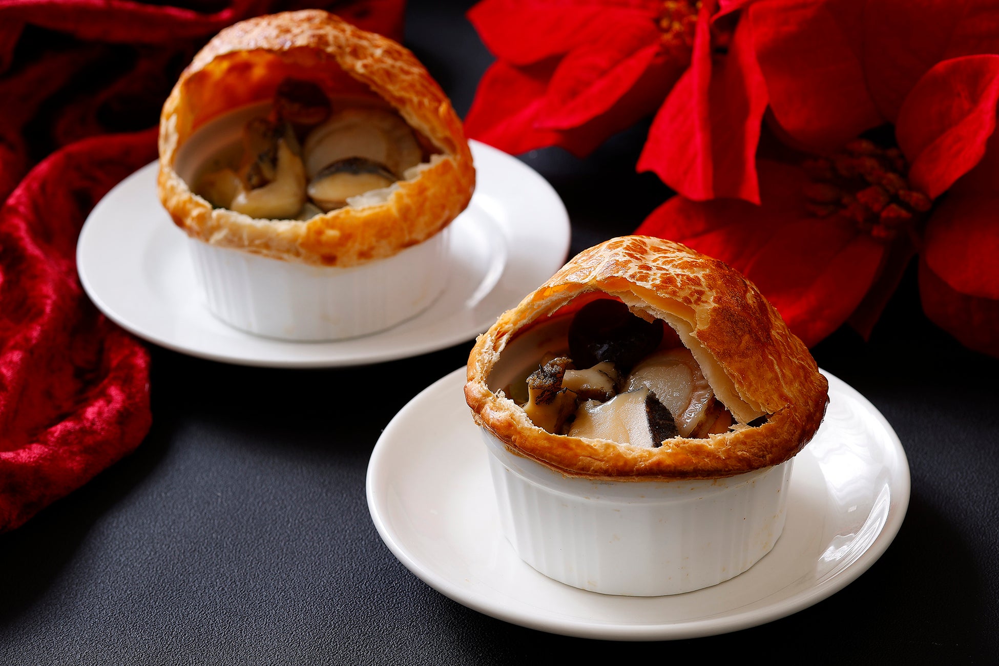 さらに、11月13日から12月19日までの期間にはタイムサービスを開催。ランチタイムにはローストビーフを、平日ディナータイムにはホタテや鮑など様々な貝を詰めたハーブソースが香るパイ包み焼きを時間限定、数量限定でご用意いたします。また、 12月20日から25日の期間にはクリスマスのスペシャルメニューとしてやわらかくジューシーな牛フィレ肉とフォアグラのステーキを提供いたします。
