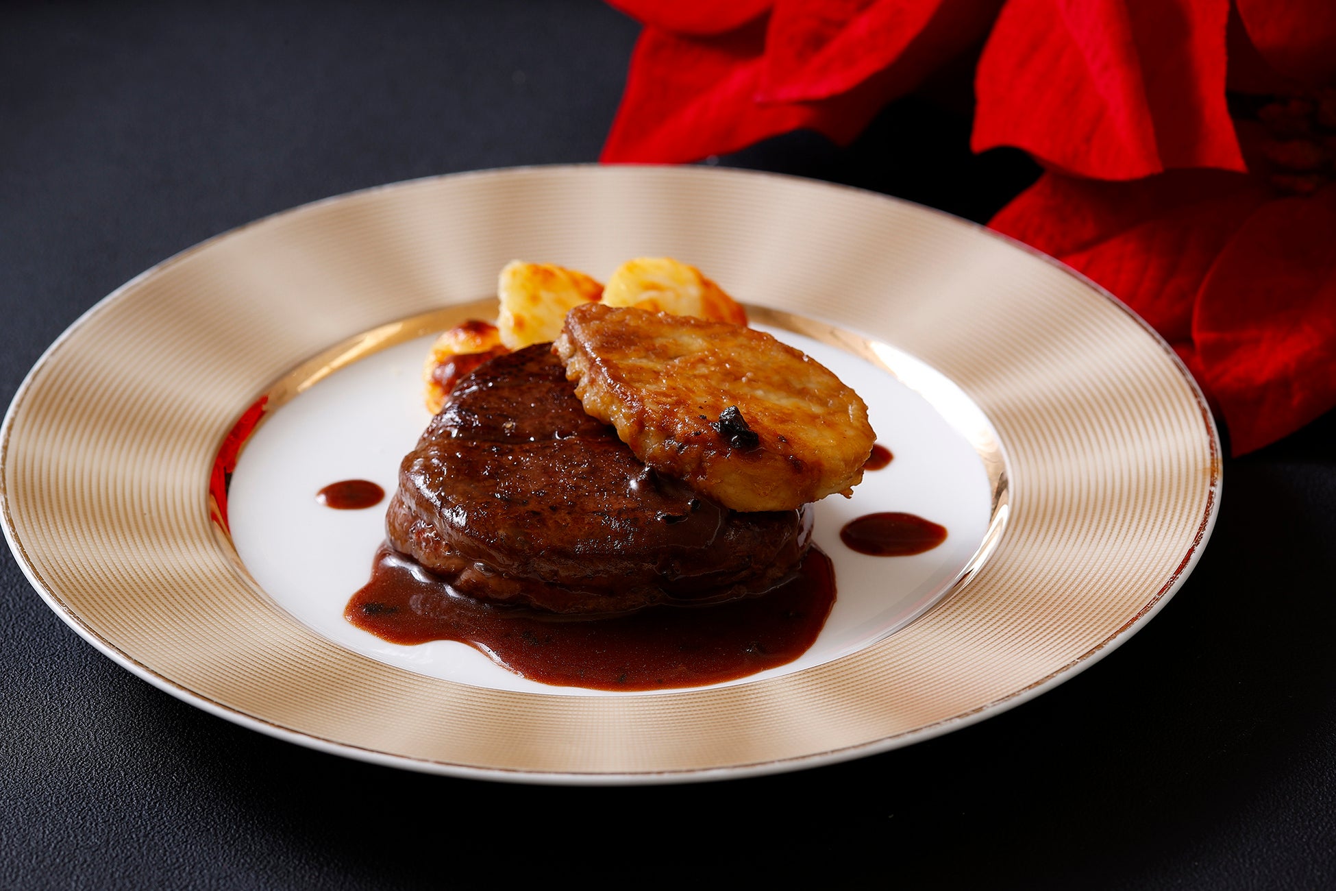 ・牛フィレ肉とフォアグラのステーキ トリュフソース ロッシーニ風