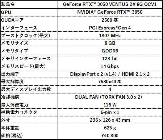 https://jp.msi.com/Graphics-Card/GeForce-RTX-3050-VENTUS-2X-8G-OCV1