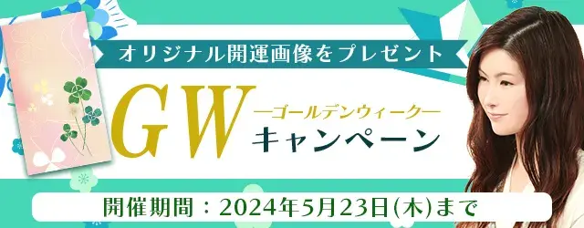 真木あかりの公式占いサイトでは、『ゴールデンウイークキャンペーン』を開催中です。期間中、対象の鑑定を占っていただいた方には、オリジナル開運画像をお贈りいたします。