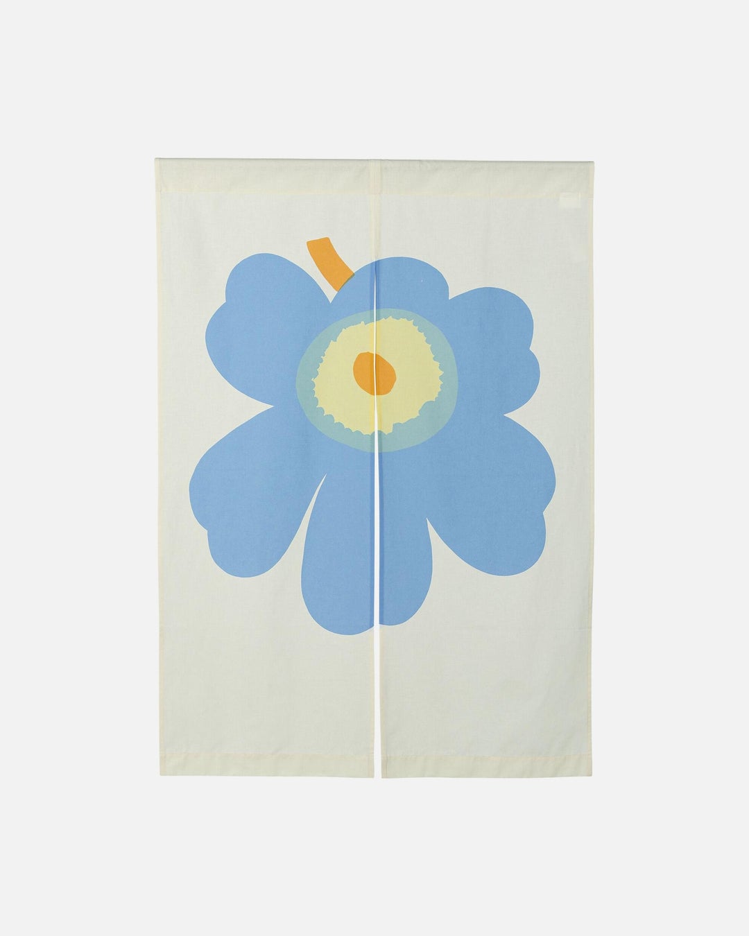 今回は、そのようなマリメッコを代表するプリント 「ウニッコ」が日本の伝統文化である暖簾にデザインされて登場します。生成りのコットンをベースに、爽やかなスカイブルーと温かなライトイエローで彩られたウニッコを中央に配置。日本家屋に馴染む落ち着いた風合いでありながら、モダンな空間にも自然と溶け込み、様々な場所でお使いいただけるアイテムです。