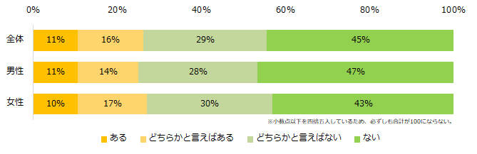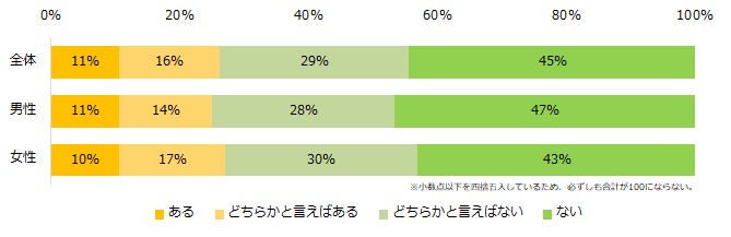 新型コロナウイルスの5類移行によって、お仕事探しをする際の希望条件に変化があったかを伺うと、27%が「ある」(ある:11%、どちらかと言えばある:16%)と回答しました。