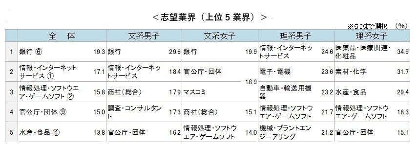 ○志望業界1位「銀行」、2位「インターネットサービス」、3位「情報処理・ソフトウエア」