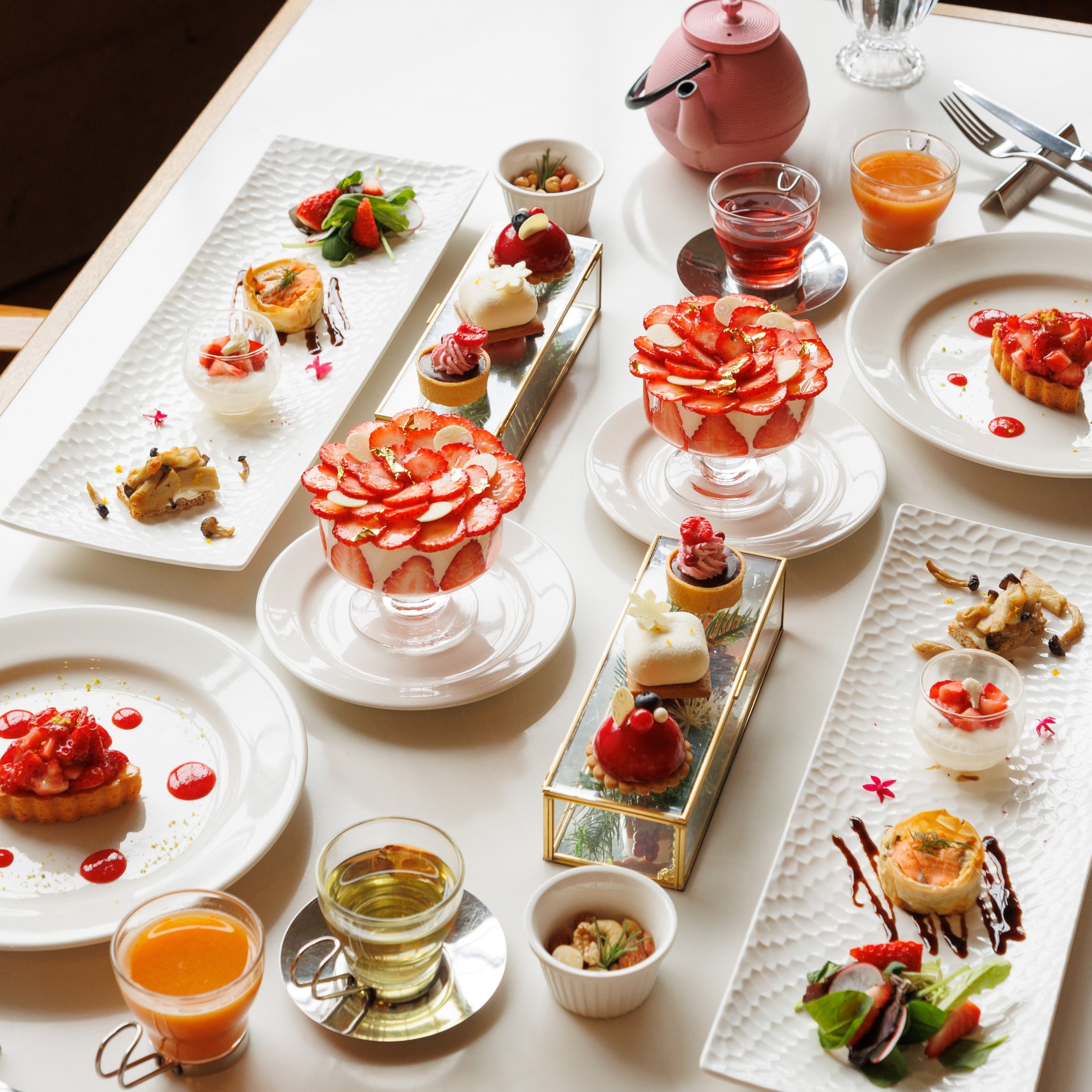 ■内容:スムージー+セイボリー4種+小さなスイーツ3種+ブーケパフェ+季節のタルト+パティシエからのお土産*飲み物付き