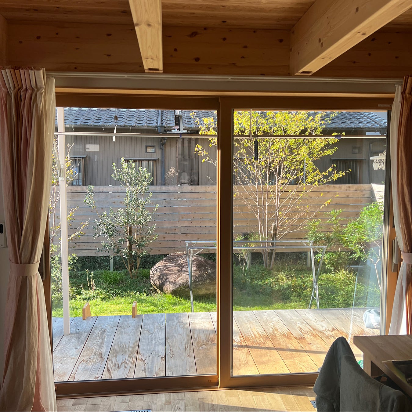お庭や縁側を美しく引き立てる大開口の窓が素敵です。『APW 331』のサポートハンドルや樹脂窓の採用に快適さへのこだわりを感じます。窓辺でのんびりと過ごすひとときが楽しめそうです。