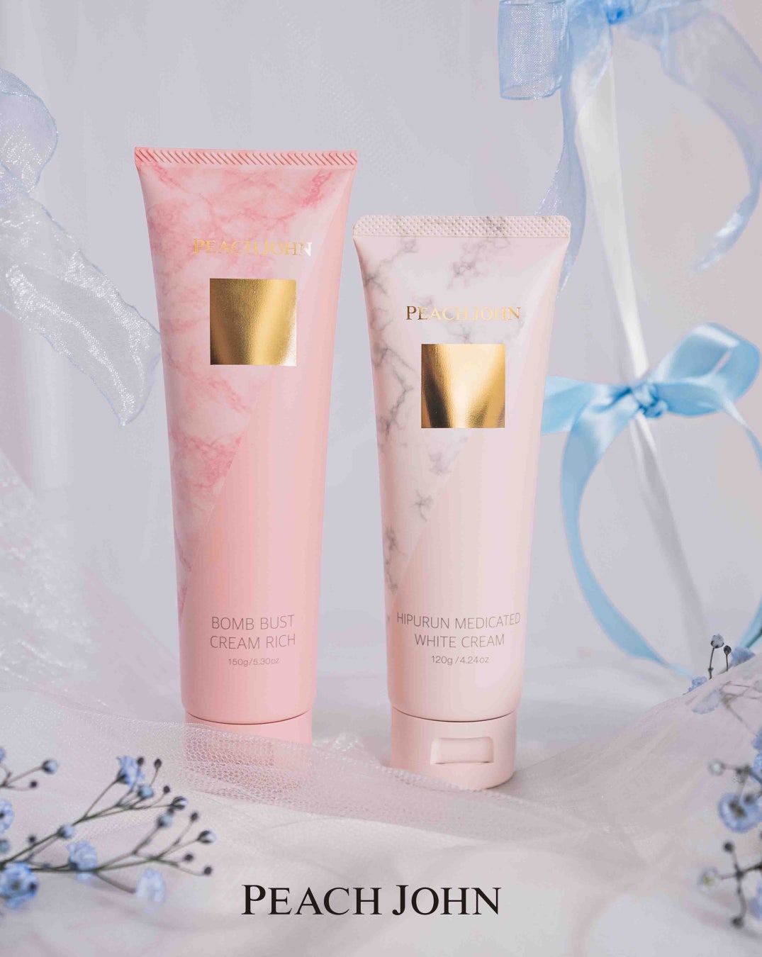 PEACH JOHN BEAUTYが提案する「ランジェリーの似合うハダカへ導く」ために生まれたバスト用クリーム。吉田朱里コラボはパール剤を配合し、キラキラっとトーンアップしたようなメイクアップ効果も。さらに塗るとはじけるピンクカプセルビタミンEなど保湿美容成分も贅沢に追加。フレッシュなローズとパウダリーなサボンが基調のラブサボンローズの香り!