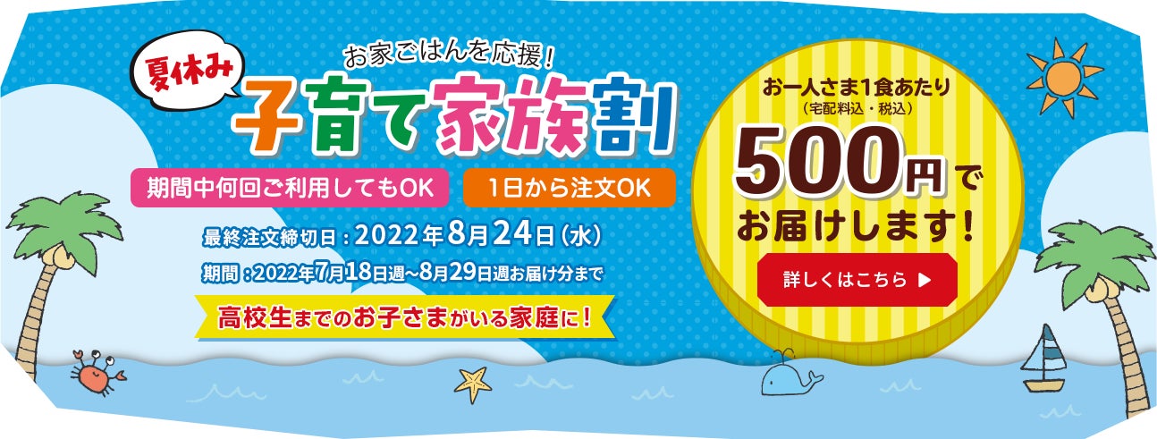 ◆お家ごはんを応援!夏休み「子育て家族割」実施中