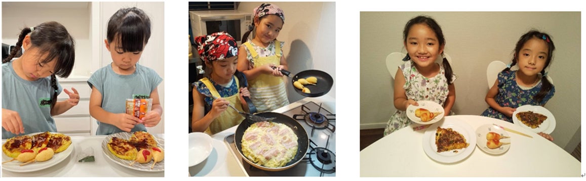 今回の「夏祭り」イベント献立でいただいた感想を一部紹介します。「夏祭り気分で楽しく美味しく食べる事が出来ました。主菜の生地作り、卵を割る、キャベツとイカを混ぜる…など簡単な工程で子どもと一緒に出来て良かったです。」(てっしんくんのママより)