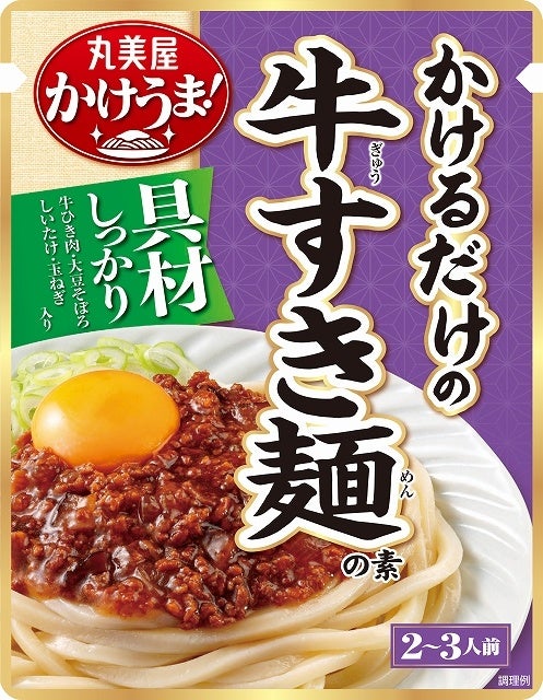 丸美屋食品工業株式会社(本社:東京都杉並区、社長:阿部豊太郎)では、「かけうま 麺用ソース」シリーズから「かけうま 麺用ソース<牛すき麺の素>」を2022年2月17日(木)から新発売いたします。また、「かけうま 麺用ソース<ごまだれ涼麺の素>」を2022年2月からリニューアル発売いたします。