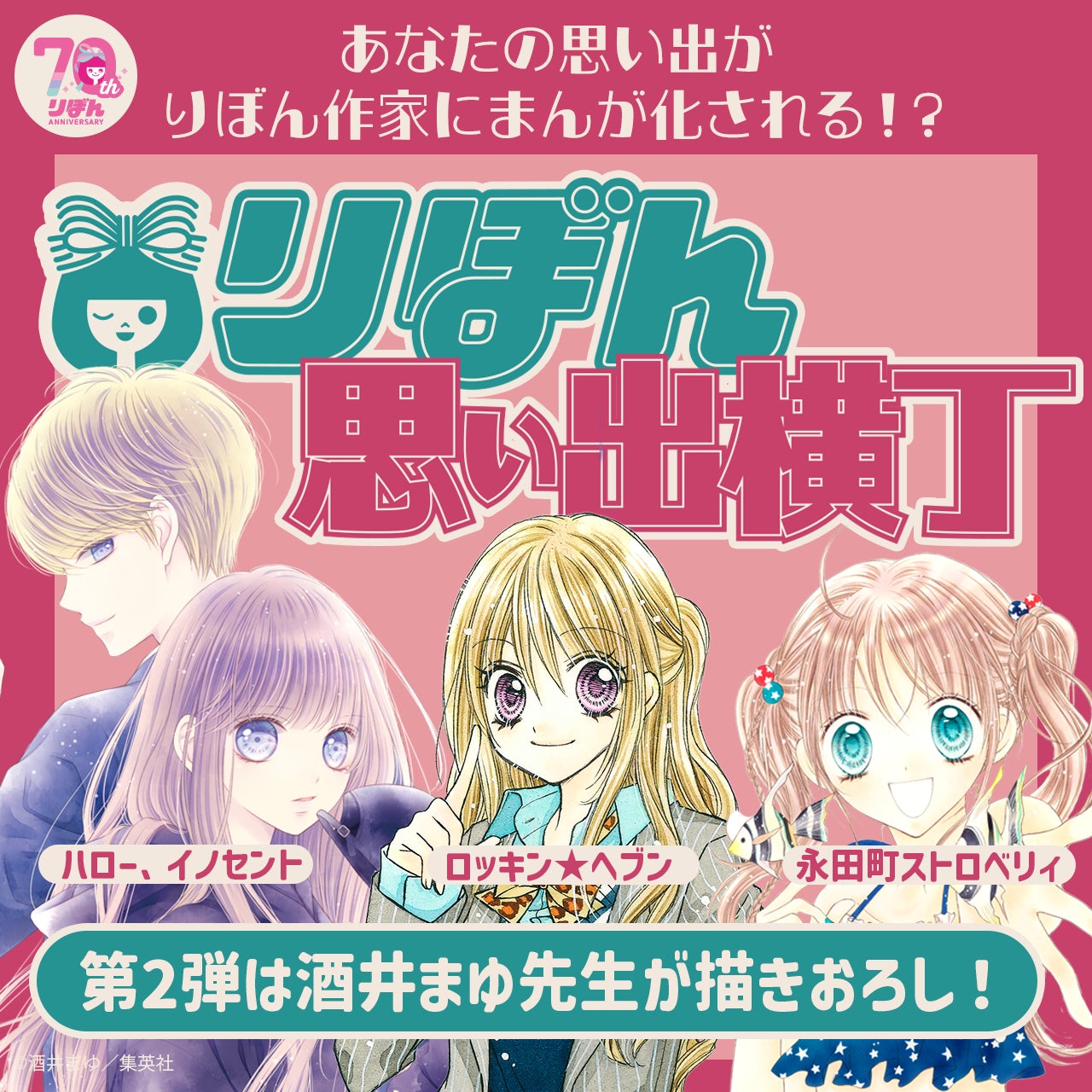 「りぼん」ファンコミュニティアプリ「りぼんむすび」で作家が読者の思い出をまんが化する創刊70周年記念特別企画『りぼん思い出横丁』を実施中。第1弾の池野恋氏の描きおろしまんがを公開&第2弾は酒井まゆ氏!