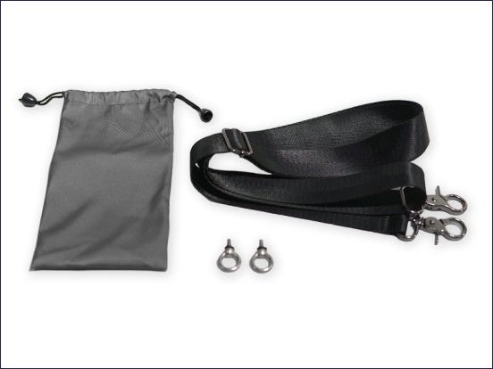 DJI RCシリーズ等のDJI製送信機に対応したストラップで、送信機の手前下部のネジ穴を使って装着し、ストラップの長さ調節が可能です。送信機の落下防止と持ち手の重量を軽減するので、長時間のドローンフライトにおすすめです。コンパクトに収納して持ち運びできるポーチが付属します。