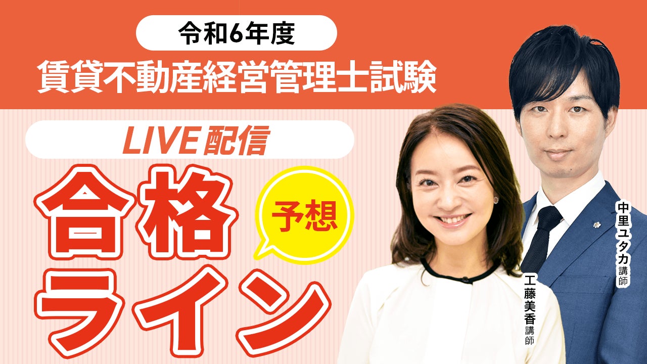 アガルートアカデミーは2024年賃貸不動産経営管理士試験の試験当日に「解答速報」、 「総評」「合格ライン・合格点予想」YouTubeLIVE配信を会員登録不要で無料公開いたします。