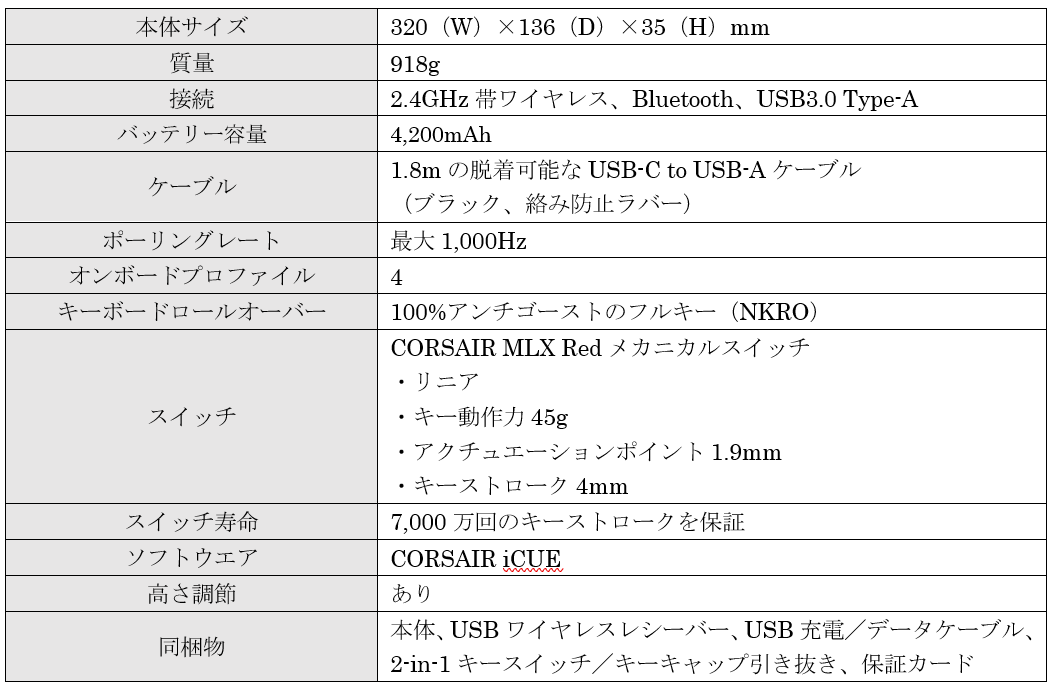 ・CORSAIR iCUEによるRGBの調節やキーマッピングの設定が可能