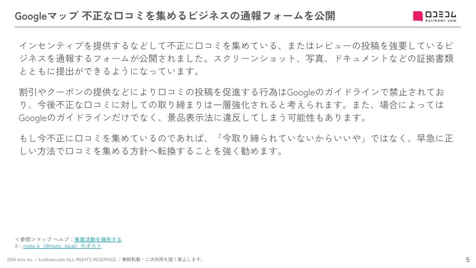 不正な口コミを集めるビジネスの通報フォームが公開:最新の「Googleマップ・MEO」情報レポート【2024年11月版】を口コミコムが公開
