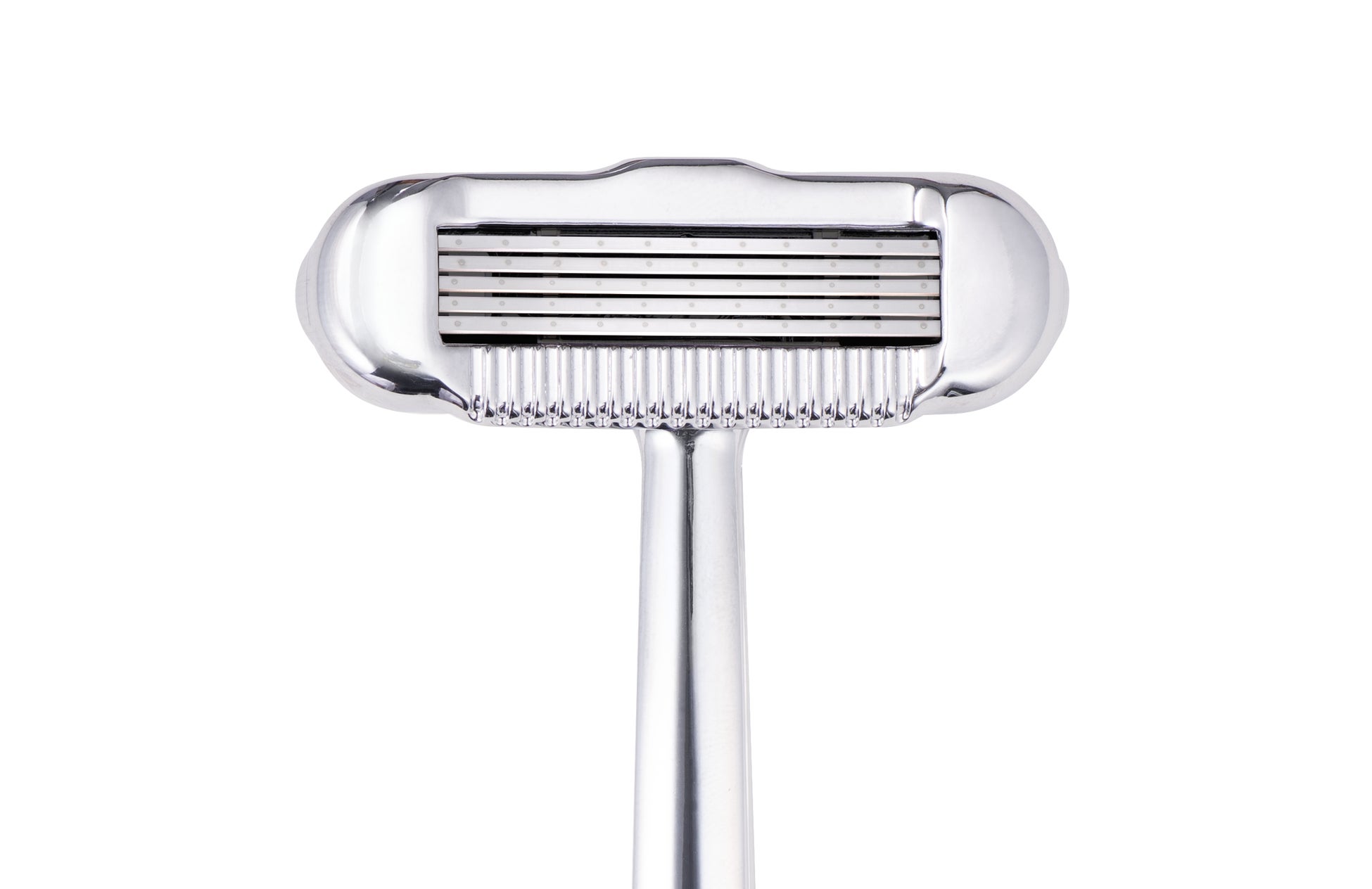 深剃りと快適な剃り心地を実現した、世界初※の替刃式5枚刃フルメタルレザー