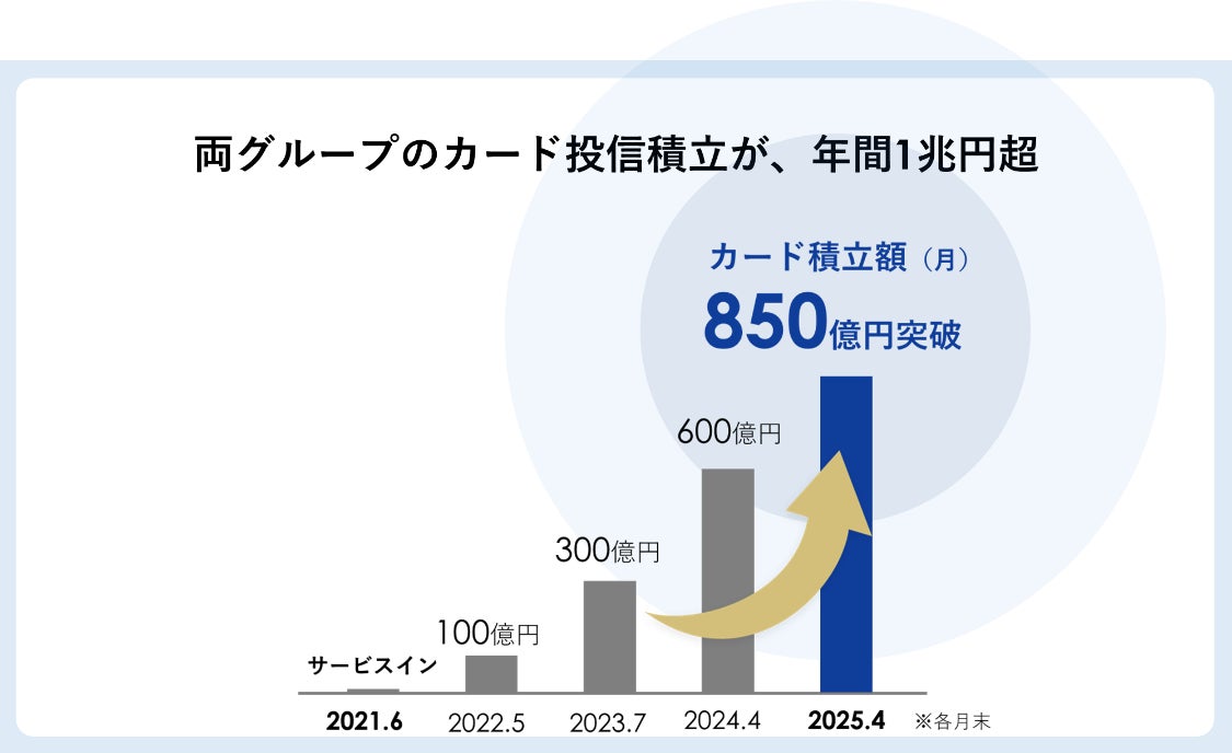 SMBCグループとSBIグループとは、2020年4月に戦略的資本業務提携に関する基本合意を締結して以来、「個人のお客さまへ付加価値と利便性の高いサービス」を提供してまいりました。2021年には、三井住友カードのクレジットカードを使ってSBI証券から投資信託を購入できる投信積立サービス(三井住友カード つみたて投資)を開始し、足元では、月間積立額が850億円を超え、年間で1兆円に達する水準となりました。また、SMBCグループが2023年3月に提供を開始した個人向け総合金融サービスOliveでは、口座と決済サービスに加え、SBI証券がOliveにおける利便性の高いネット証券機能を担い、570万人を超えるお客さまにご利用頂いています。