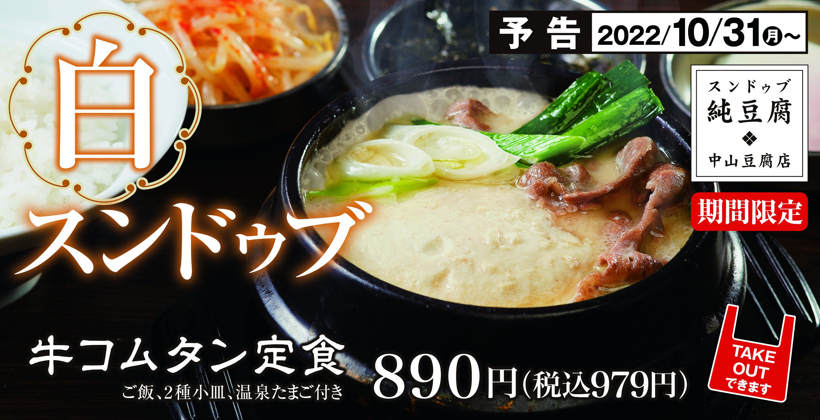 「中山豆腐店」初の辛くないスンドゥブ定食が誕生!2022年10月31日(月)より期間限定で販売開始