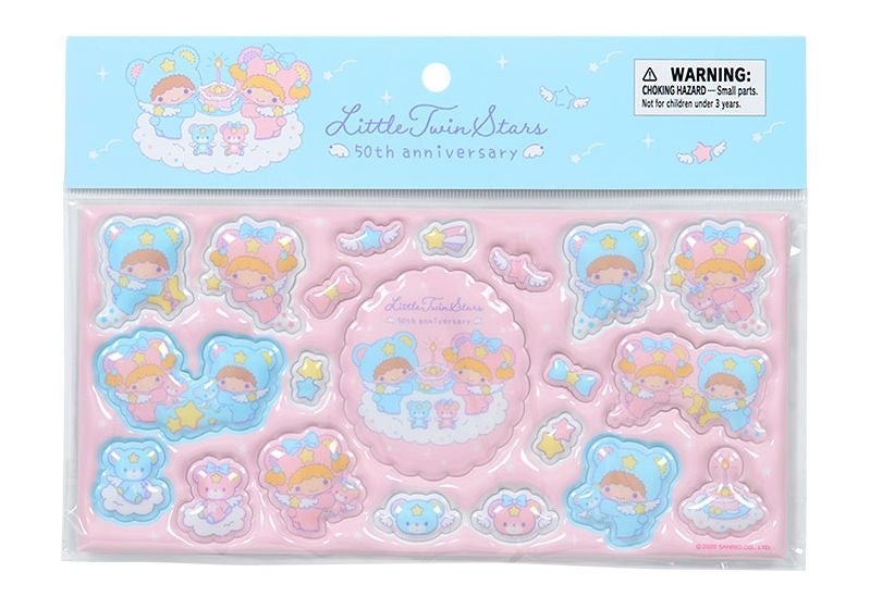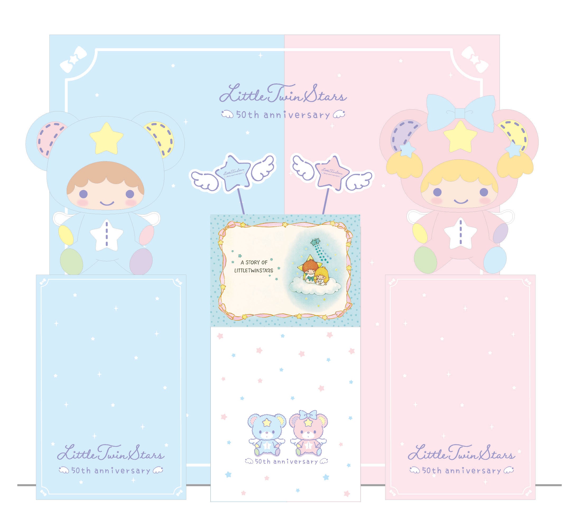 全国のサンリオショップ・百貨店サンリオコーナー・サンリオオンラインショップにて、商品をご購入の方を対象に「リトルツインスターズ50周年ステッカー」を1枚プレゼントいたします。さらに、一部のサンリオショップ・サンリオオンラインショップにて、店内商品5,500円(税込み)以上をご購入の方を対象に「メッセージボイス入りカード」も1枚プレゼントいたします。HPより詳細ご確認ください。