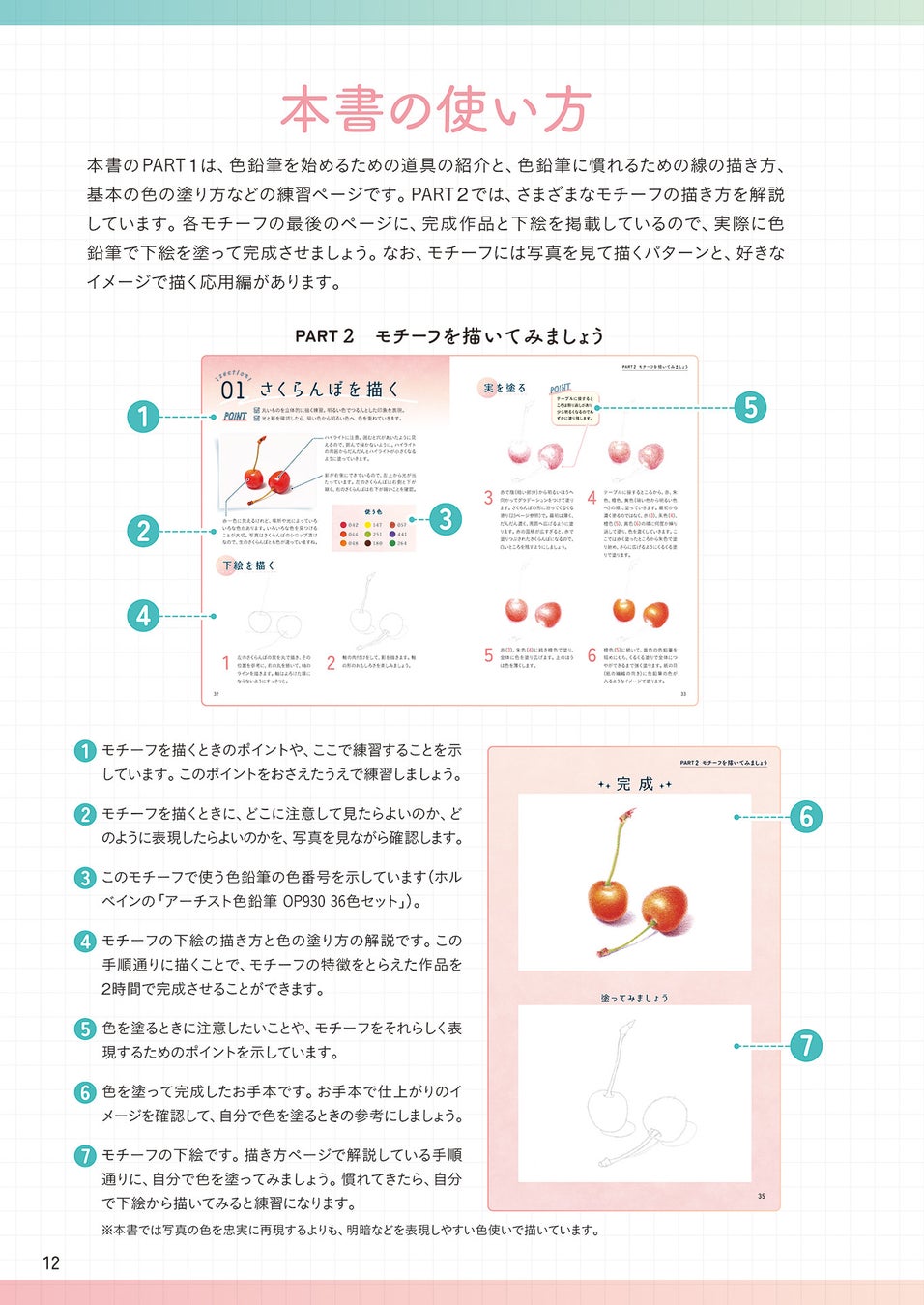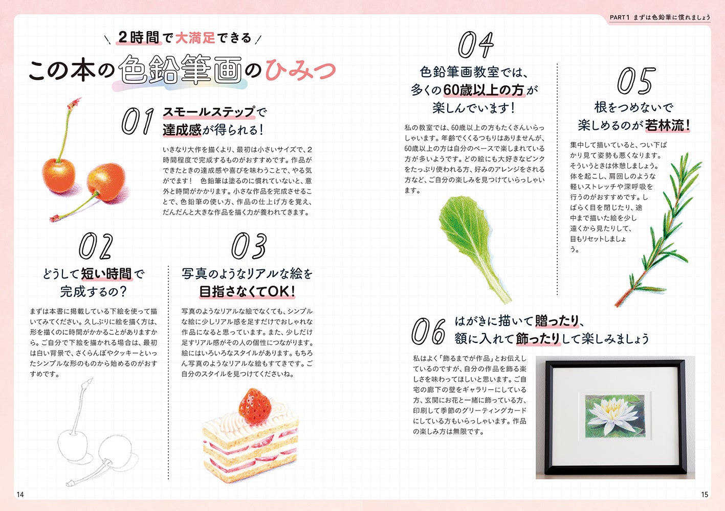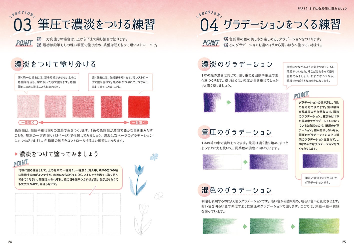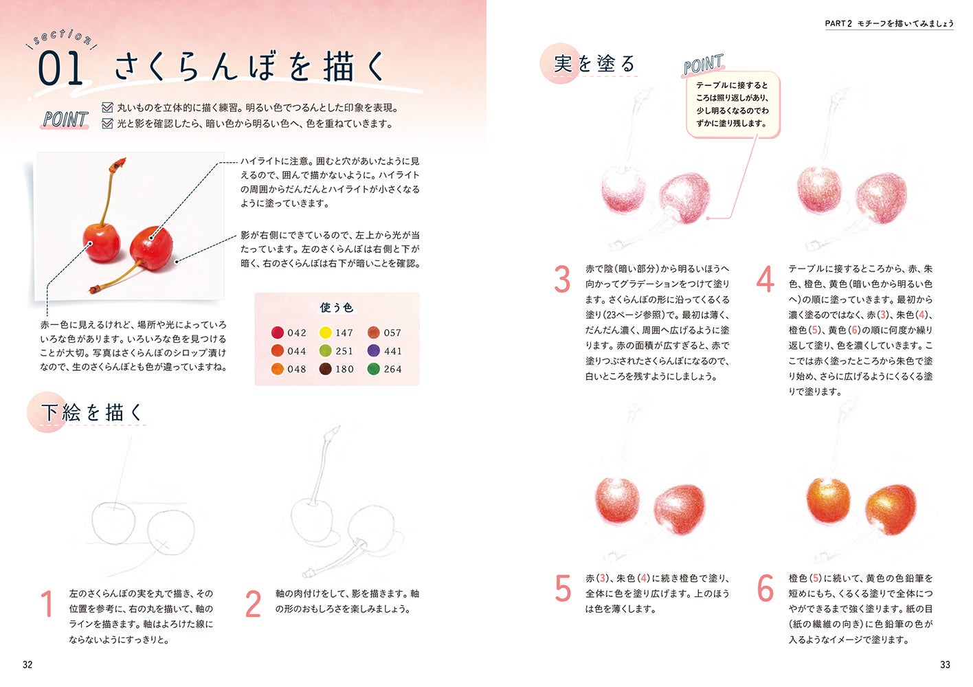 色鉛筆画をこれからはじめる方、はじめたばかりの方にもおすすめの1冊です。