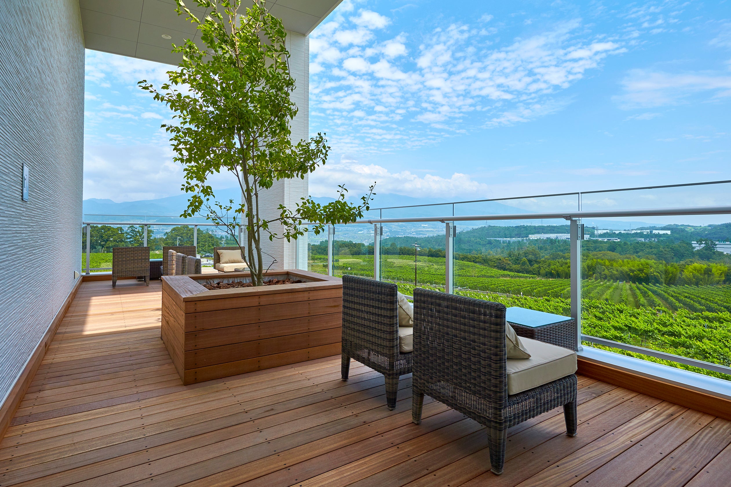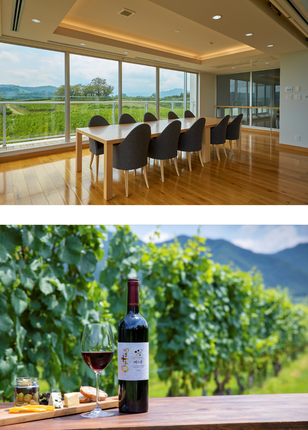 自然・地域・未来と共生するワイナリーで、日本ワインの魅力を体感できる特別なプライベートツアーです。「ワールド・ベスト・ヴィンヤード」に3年連続で選出された、360度ブドウ畑に囲まれた風光明媚なワイナリーで、畑、醸造施設、樽庫をご覧いただいた後、畑を一望できる開放的な空間「オムニスルーム」にてテイスティングを行います。テイスティングでは、国際コンクールでも高い評価を得た他、今年4月にG7サミット(長野県軽井沢外相会合)で提供された「シャトー・メルシャン 椀子シラー」を含む、ワインメーカーがこのツアーのために選定した計6種の国際品種のワインをお楽しみいただきます。