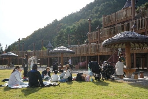 今年ははじめての試みとして、テーブルのある有料席、無料開放のレジャーシートエリアなどを用意しましたが、巨大アスレチックの前に設定したレジャーシートエリアは特に家族連れに人気で、購入した食事を広げてピクニックを楽しんでいました。会場となったアミューズ ヴィレッジの広場は全面芝生で、子供達が駆け回っても安全なため、親御さんも安心してくつろいでいたようです。