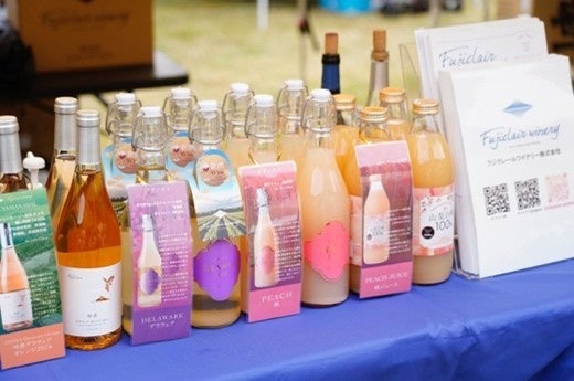 本イベントは、アミューズが山梨の地域資産と環境の魅力を県内外に発信することを目的に2022年から行なっているもので、今年は3回目の開催となります。ワインや日本酒などの県産酒、飲食、ワークショップなど全38店が出店し、秋空の下の交流を楽しみましたので、当日の様子をご紹介します。