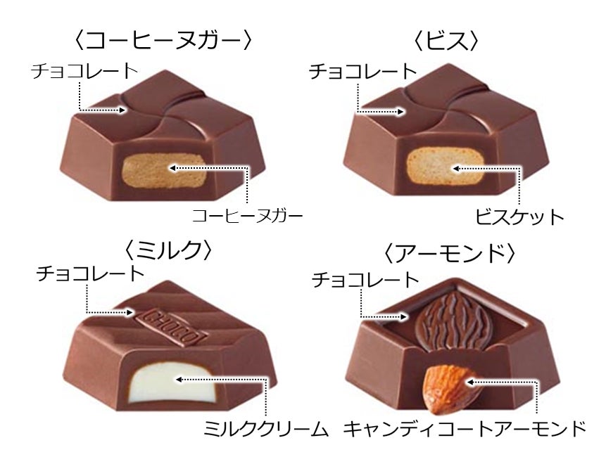 ③人気ロングセラー4種の味が入ったアソート商品で様々な食感が楽しめる