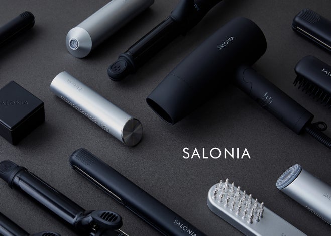 SALONIAのヘアアイロンは2012年から発売を開始し、ヘアドライヤーと共にロングセラー商品となっています。両商品の定番カラーはベーシックな5色(ブラック・ホワイト・グレー・ネイビー・ベージュ)ですが、季節ごとに限定カラーを展開し、ご好評いただいています。