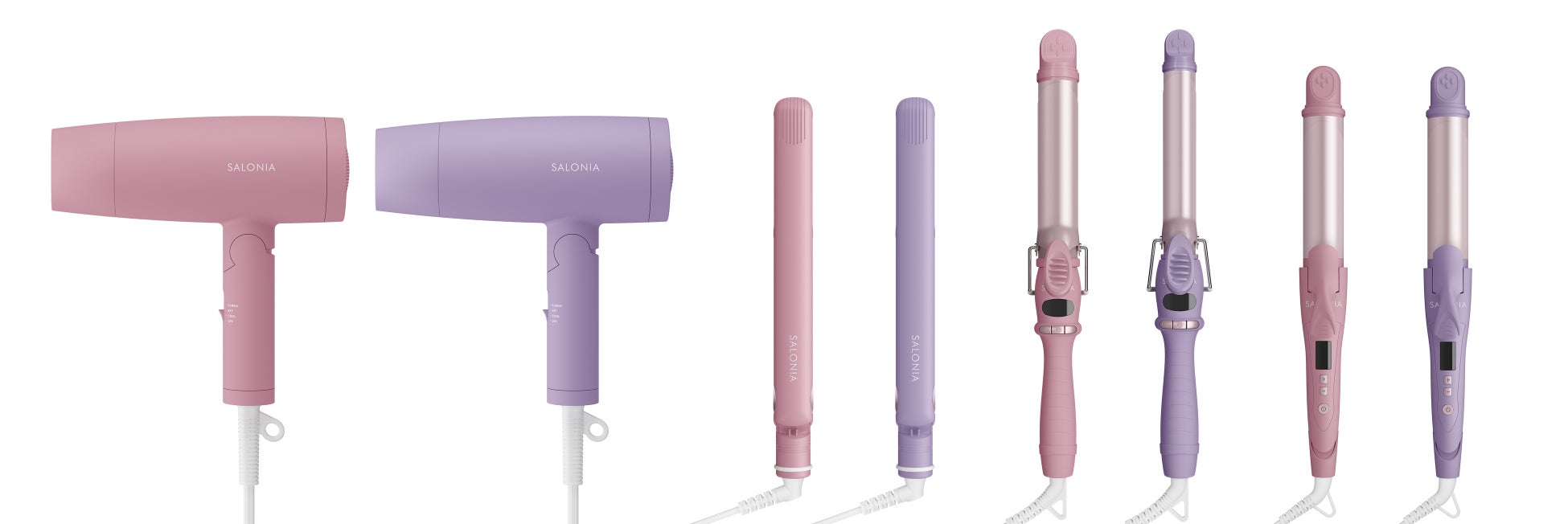 2024年秋冬限定カラーのテーマは「My Nuance (マイ ニュアンス)」。SALONIAでは、絶妙なニュアンスの違いにこだわり、一人ひとりが個性を表現することを応援します。テーマに合わせ、2024年のトレンドカラーである、くすみカラーのピンクとパープルを採用し、ドライヤーとヘアアイロン3種(ストレート・カール・2WAY)展開します。さらに、ヘアアイロンのバレルとプレートがピンクメタリックになっており、統一された色味となっています。秋冬のムードにふさわしい、温かみのある絶妙なくすみカラーで、楽しくスタイリングいただけます。