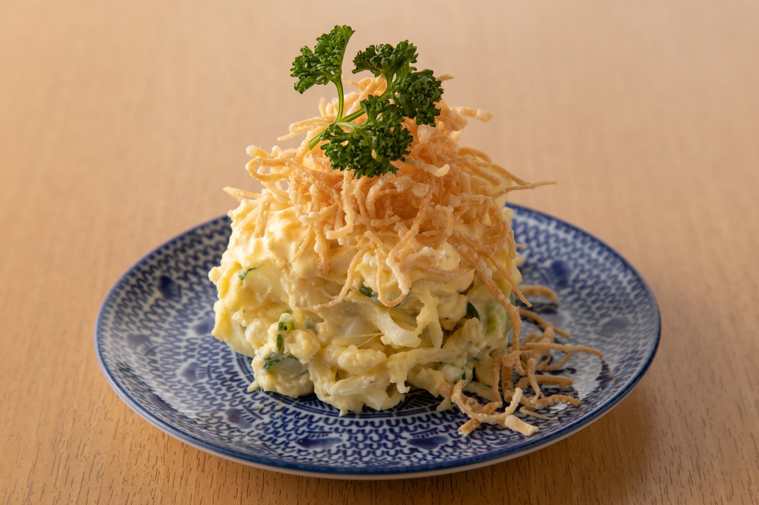 北海道産男爵の自然な甘さのポテトサラダに、ゆで玉子たっぷりのタルタルソースをプラス