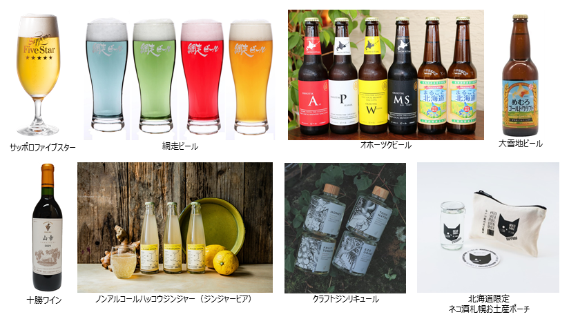 サッポロビール園限定の生ビールや網走ビール、オホーツクビール、大切地ビールなどのバラエティ豊かなビールに加え、十勝ワイン、日本酒、クラフトジンリキュールなどが登場。