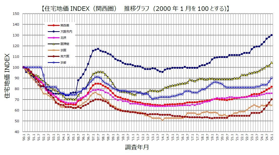 野村不動産ソリューションズ 住宅地価INDEXは、当社独自の地価調査を指数化し、作成したものです。