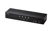 1組のマウス、キーボード、VGA対応ディスプレイで、4台のパソコンを切り替えて操作できるパソコン切替器(KVM)です。