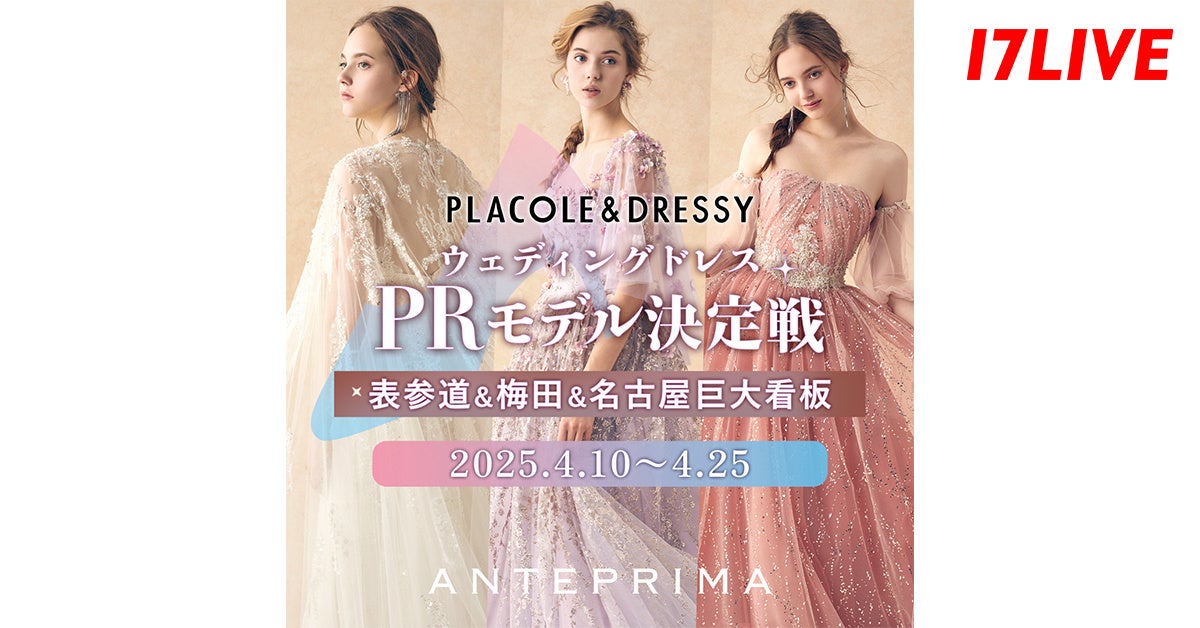 17LIVE株式会社(東京都渋谷区、代表取締役:ジャン・ホンフイ、URL:https://jp.17.live/)が運営する日本最大級のライブ配信アプリ「17LIVE(イチナナ)」は、結婚を控えたカップルや女性に大人気のウェディングブランド「PLACOLE&DRESSY」とコラボレーションし、同ブランドのPRモデルを選出する『「ANTEPRIMA」PLACOLE&DRESSY限定コレクション ドレスPRモデル決定戦』を、2025年4月10日(木)より開催することが決定しましたので、お知らせいたします。