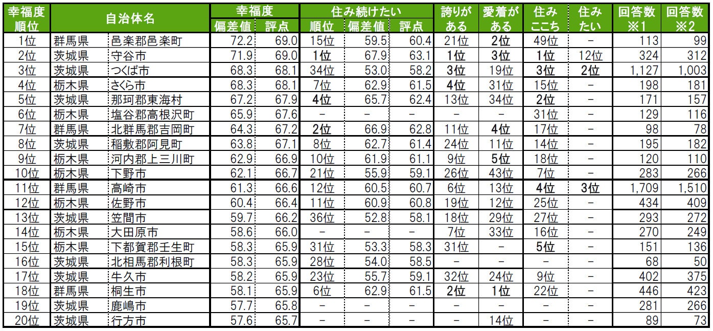 いい部屋ネット「街の幸福度 & 住み続けたい街ランキング2022<北関東版>」発表