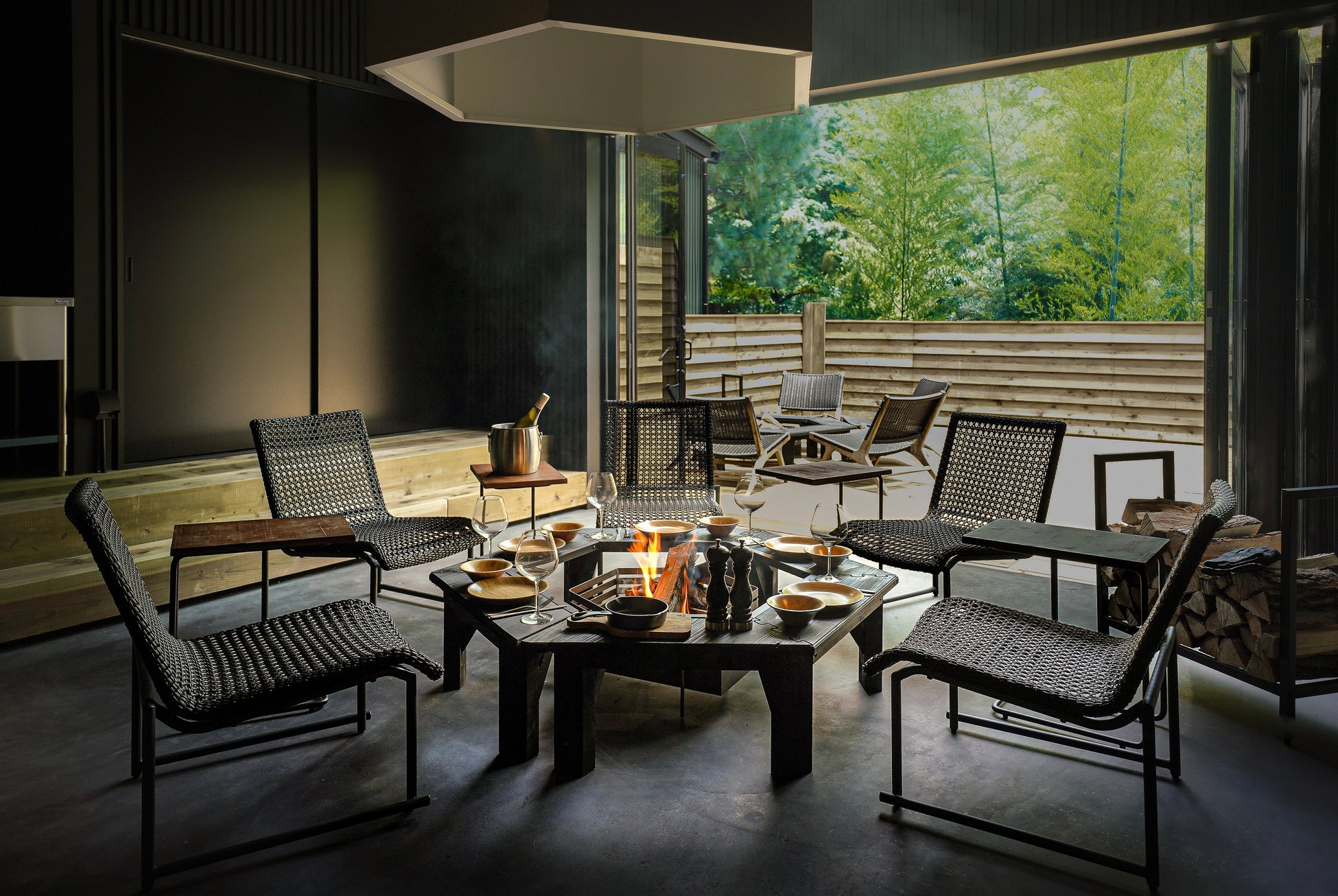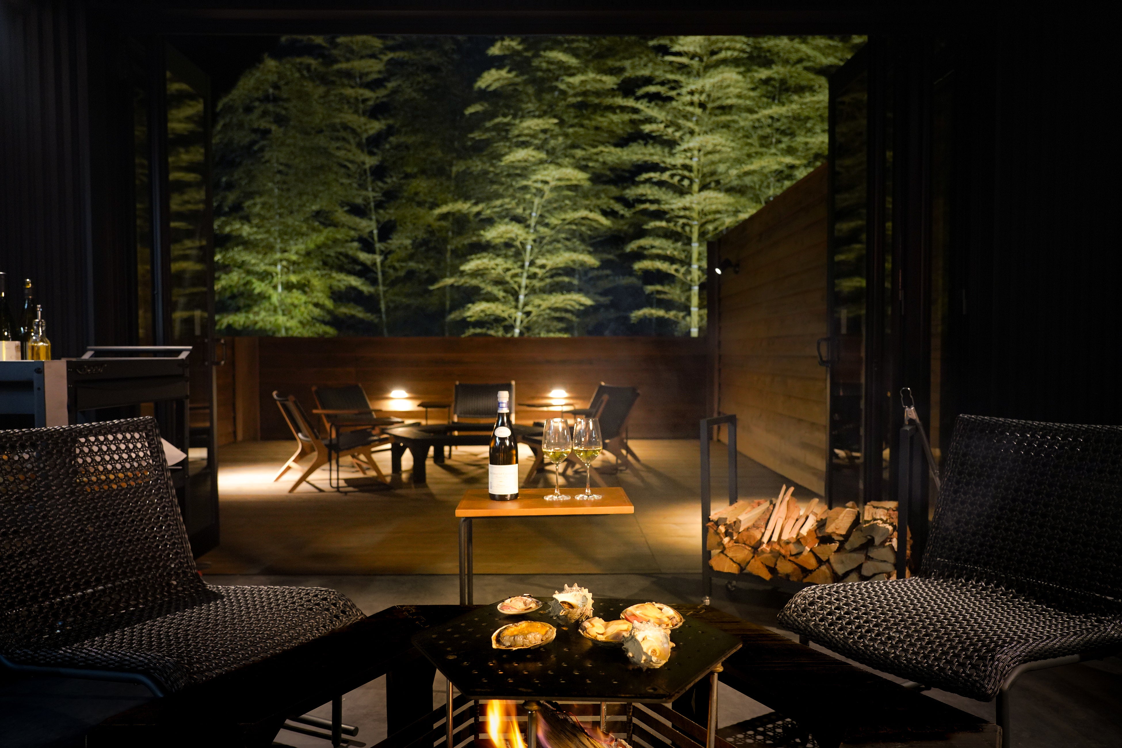 ◆各棟専用の BBQ スペースに焚き火台を設置。熱海の旬食材を楽しむ焚火 BBQ