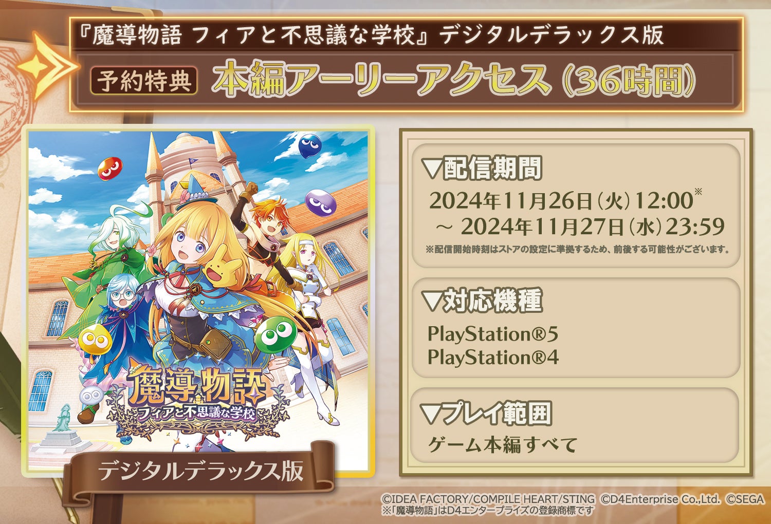 対象者 :『魔導物語 フィアと不思議な学校』デジタルデラックス版の予約者限定