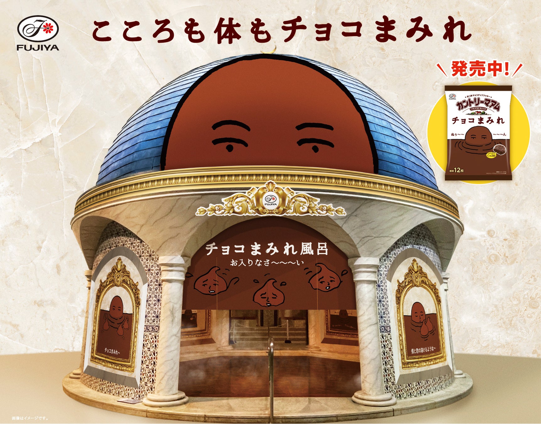 ユネッサンでは、2006 年より毎年バレンタインシーズンに「チョコレート風呂」を開催しております。 20年目を迎える本年は、発売から5周年を迎える不二家の「カントリーマアムチョコまみれミドルパック」とコラボレーションしたイベントを開催いたします。「こころも体もチョコまみれ」をテーマに、水着で遊べる温泉「ユネッサン」ではコラボ風呂「カントリーマアム チョコまみれ風呂」と、ショコラティエに扮したスタッフによるサウナイベント「Je t'aime(ジュテーム) ! ロウリュ・デュ・ショコラ」(2月限定)が登場する他、日にち限定でサンプリングを実施いたします。