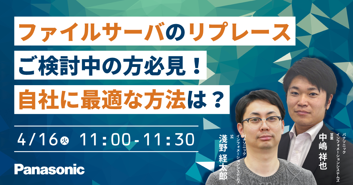 パナソニック インフォメーションシステムズ株式会社は、2024年4月16日(火)『ファイルサーバのリプレースご検討中の方必見!自社に最適な方法は?』セミナーを開催します。