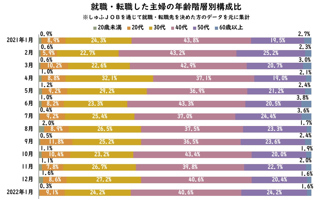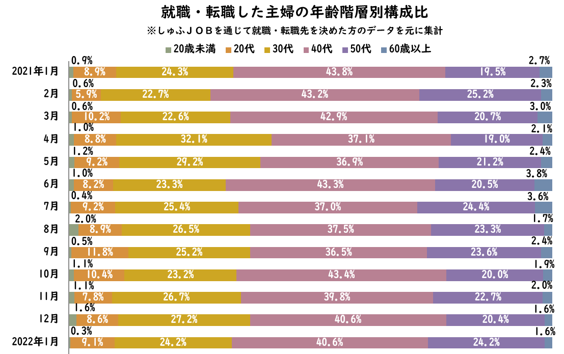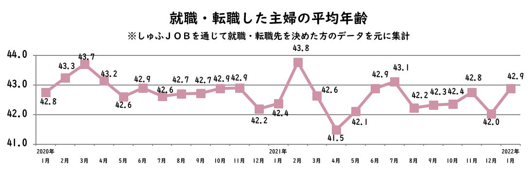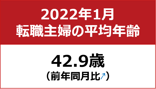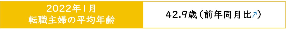 【転職主婦の平均年齢調査 2022年1月】42.9歳(前年同月比+0.5歳)