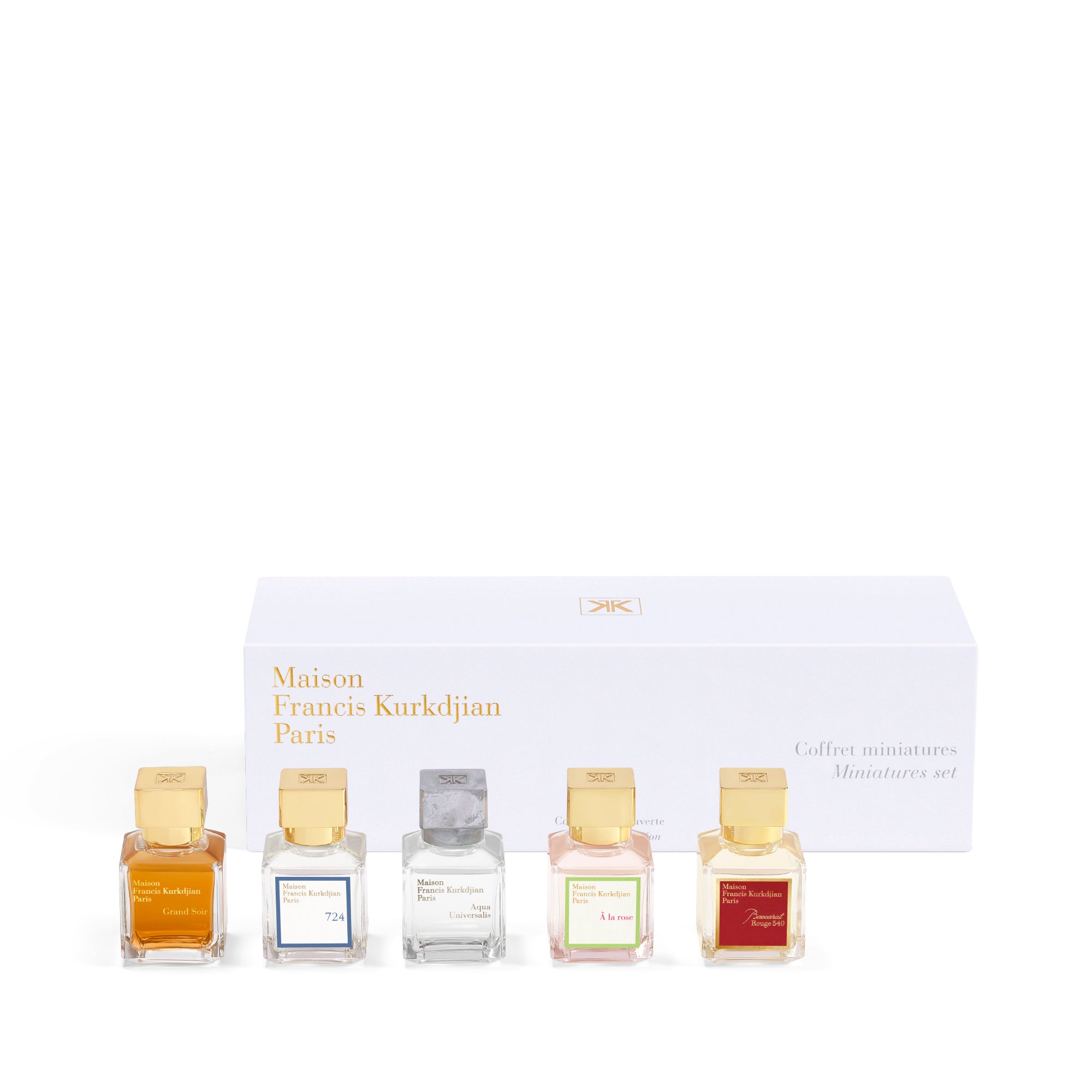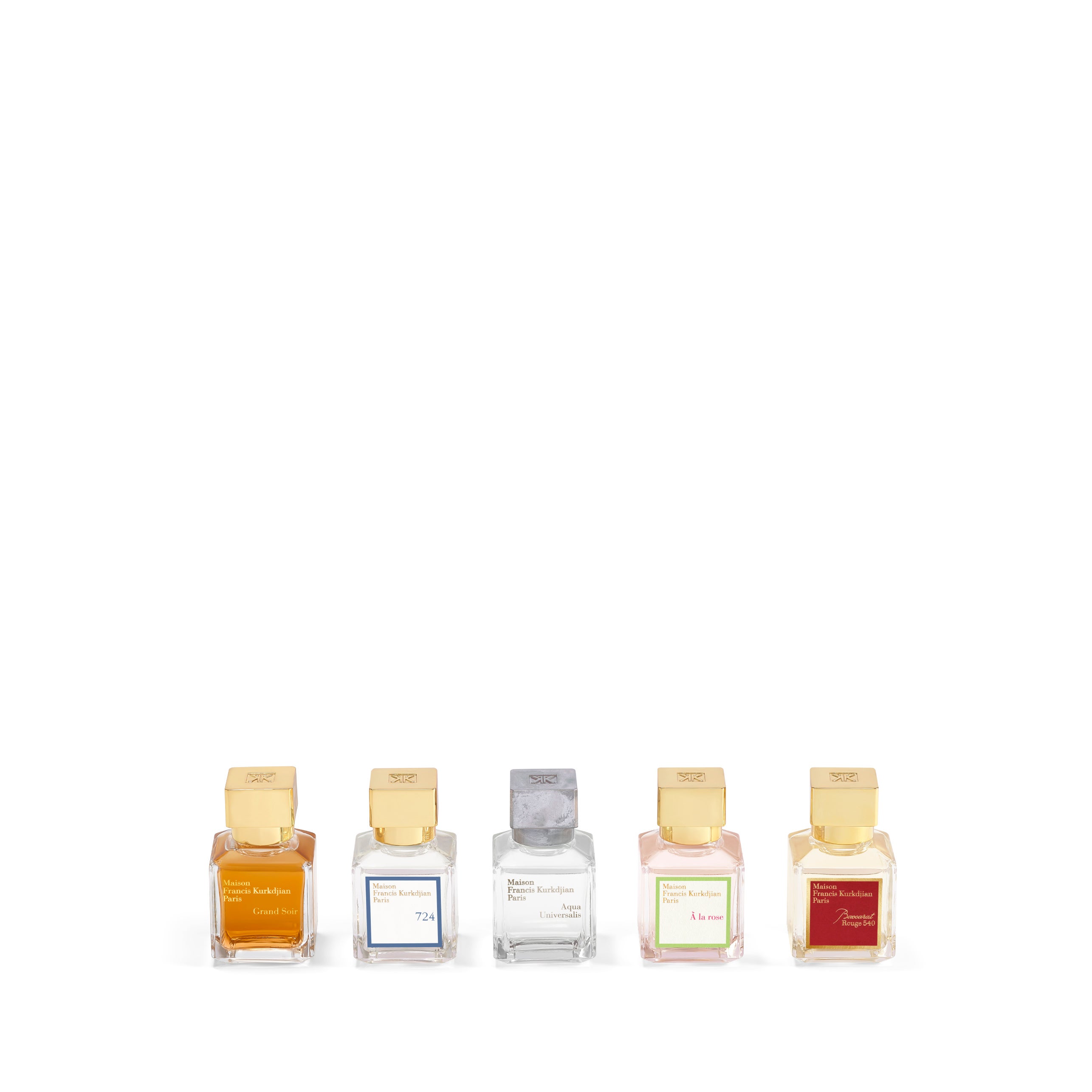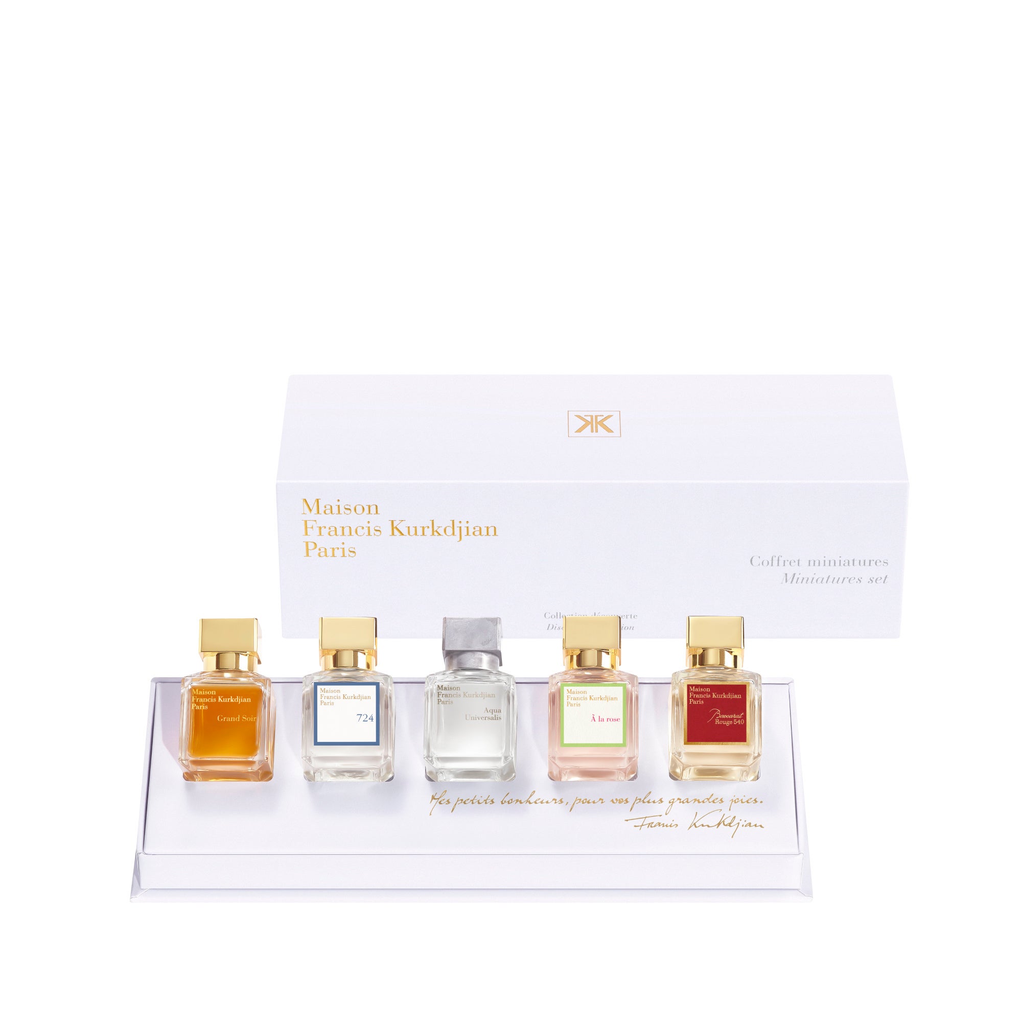 「私が贈るささやかな喜びあふれる香りで、あなたを最高の喜びに」フランシス・クルジャンは、メゾンを代表する5つの香りを、アイコニックな70mLボトルのデザインをそのまま小さくしたような、10mLミニチュア版として発売します。