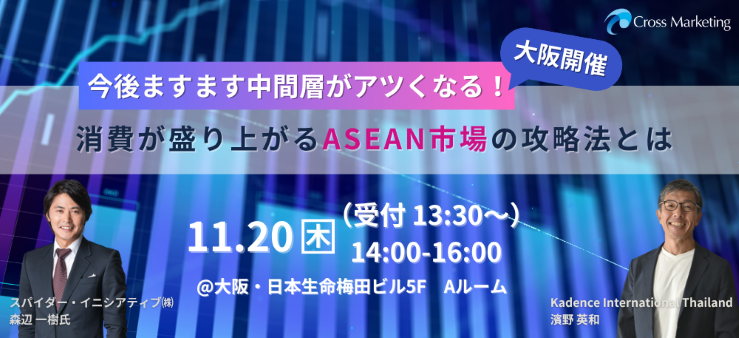 株式会社クロス・マーケティング(本社:東京都新宿区 代表取締役社長兼CEO:五十嵐 幹、以下当社)は、11月20日(木)に大阪にて来場型のセミナーを開催いたします。