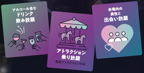 「アトラクション乗り放題」「アルコール含むドリンク飲み放題」「出会い放題」