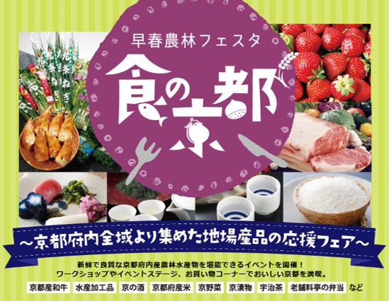 「京の食」プレミアムフードコンソーシアムでは、新型コロナウイルス感染症の影響を大きく受けている府内産農林水産物・加工品の需要を喚起するため、「『食の京都』京都府早春農林フェスタ」を開催します。
