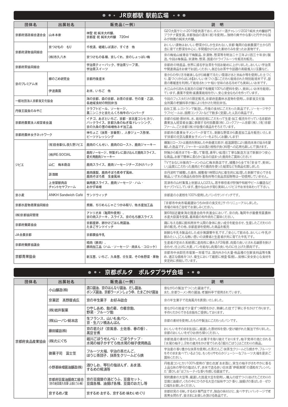 特定非営利活動法人日本料理アカデミー、京都府茶協同組合、京都府酒造組合連合会、京都府漬物協同組合、公益社団法人京のふるさと産品協会、京都府