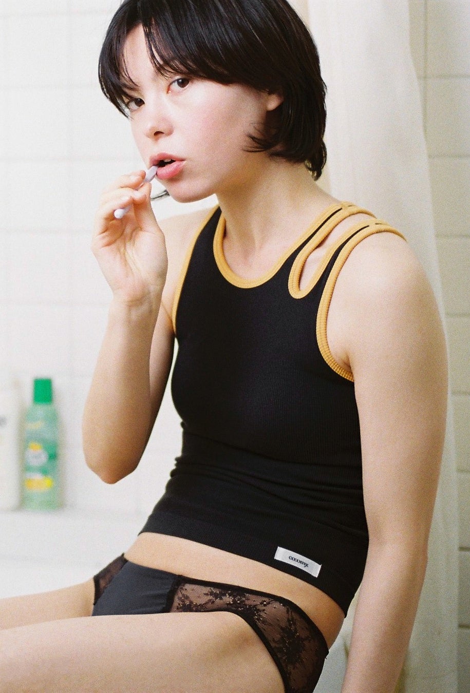 セクシーさとヘルシーさを絶妙なバランスで融合させた、これまでの「GOCOCi」にはなかったミニマルなデザインに挑戦。「GOCOCi」ならではのシルエットとの両立を図りながら、下着と洋服のボーダレス化を目指しました。完成したアイテムは、ファッションアイテムとしてもレイヤードが楽しめる新しいアンダーウェア。「GOCOCi」の定番である[ハーフトップ]や[ブラトップ]といったノンワイヤーアイテムをベースに展開し、ファッションを楽しみたい方へ向けたコーディネイトも提案していきます。