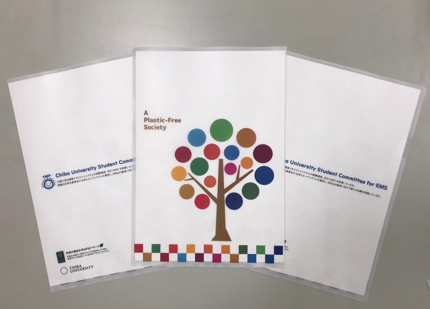 千葉大学環境ISO学生委員会は、4月5日(水)に行われた令和5年度の入学式で、学部新入生全員に紙製のクリアファイルをプレゼントしました。
