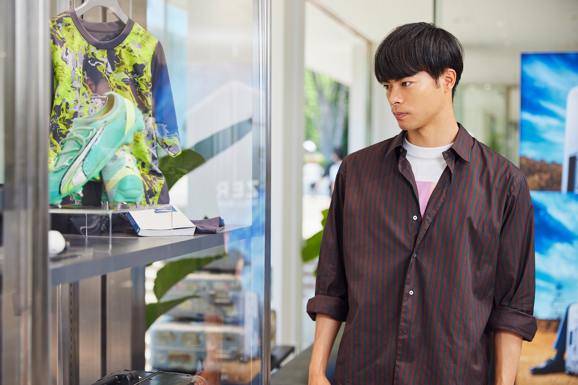 初めて訪れた三笘薫選手は「外からでも店内全体が見渡せて開放的で、ラゲージ、小物やバックパックなど、店の奥へ進むごとにいろんな製品を楽しめる構造になっている。とても現代的で、入るとワクワクさせてくれる」とコメント。
